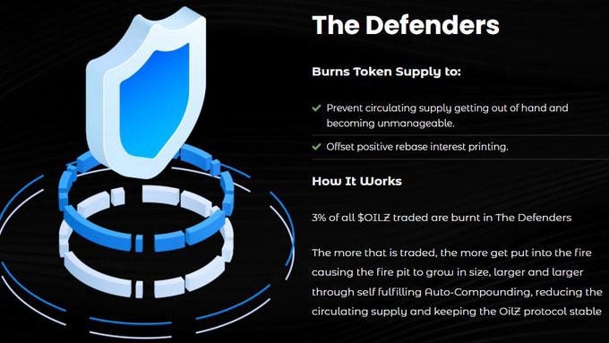 3% of all $OILZ traded are burnt in The Defenders.